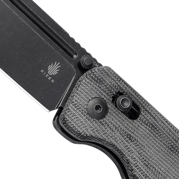 Kizer 154CM Blade Clutch Lock Micarta-Griff V4481C3 (3,31″ Black Stonewash) Dieses 2013 von KIZER eingeführte Modell hat sich im letzten Jahrzehnt zu einem der klassischen KIZER-Messerdesigns entwickelt.