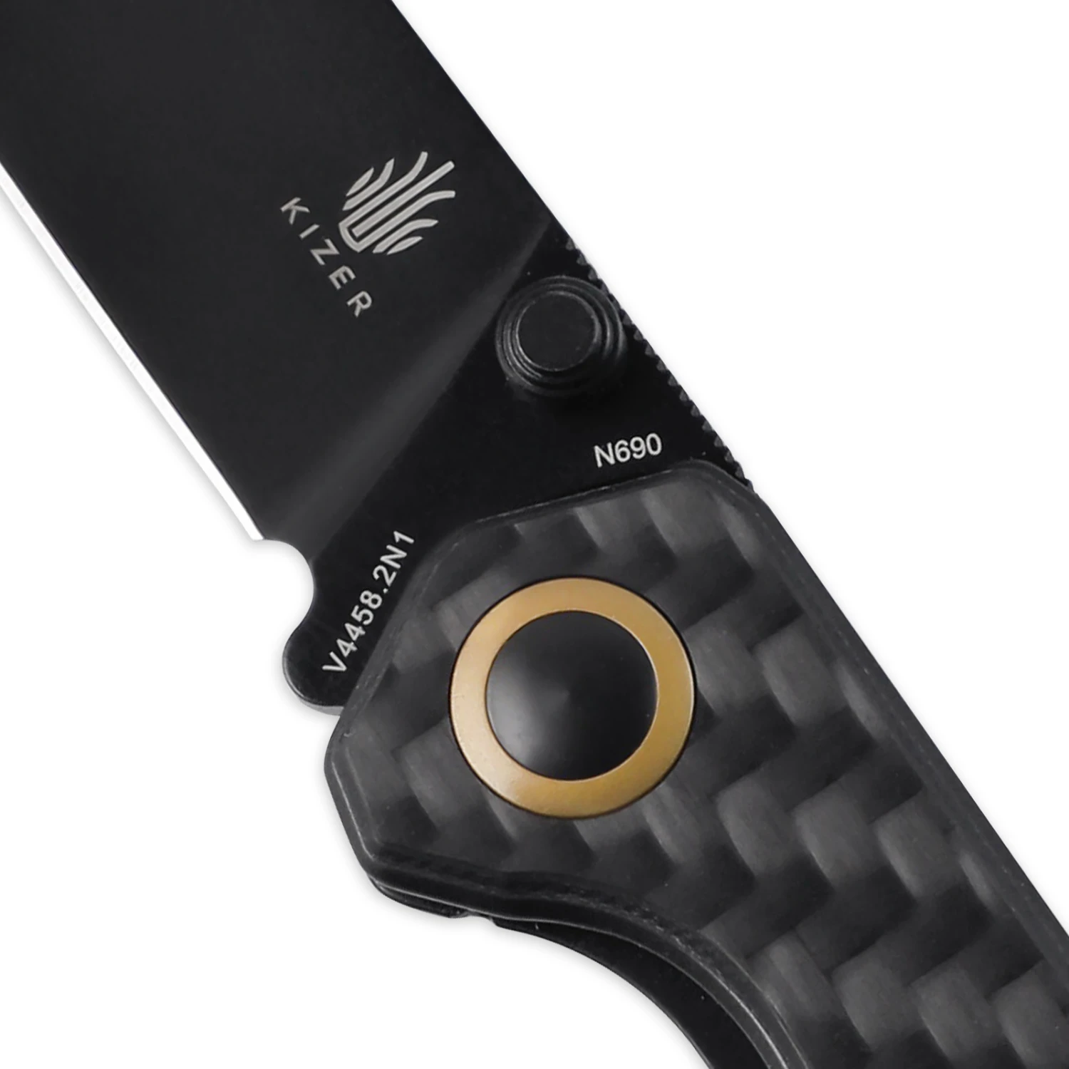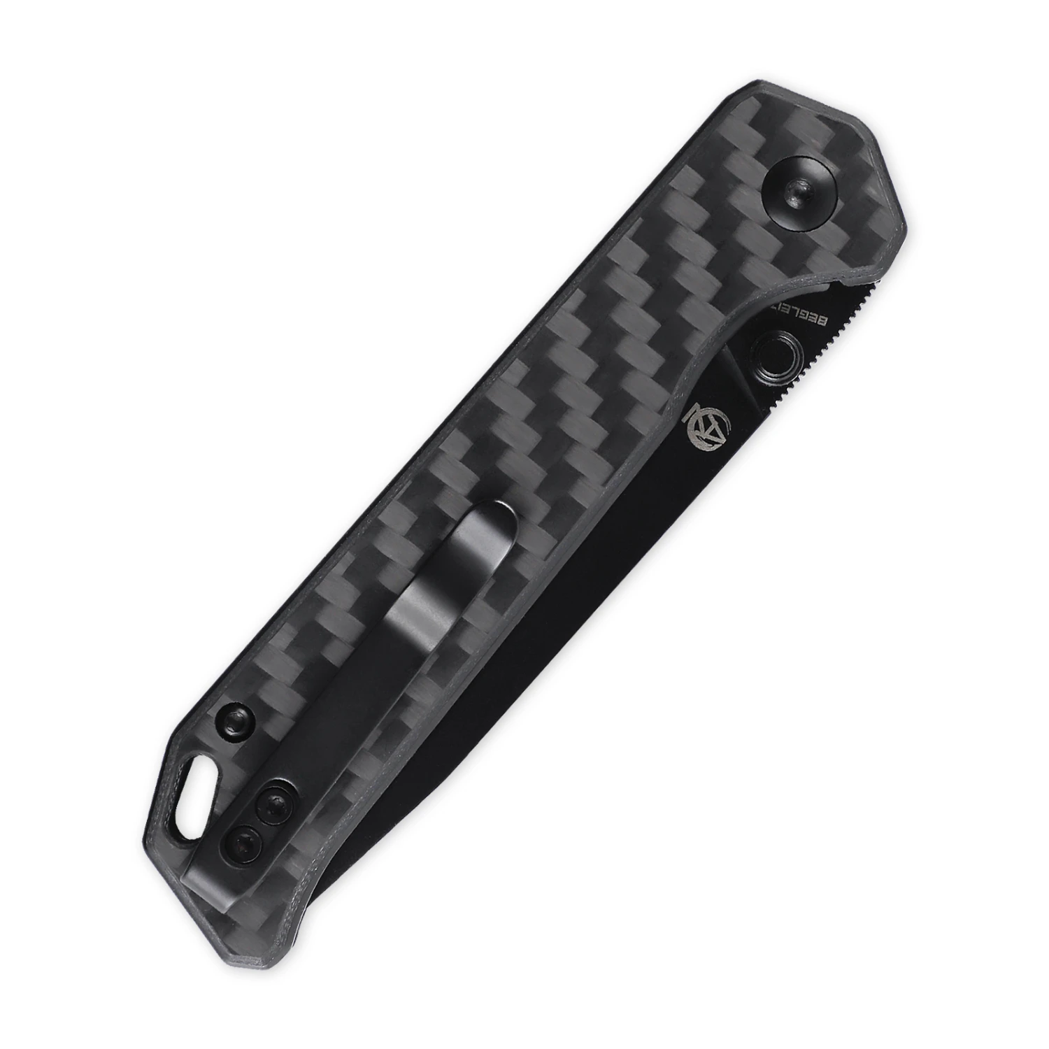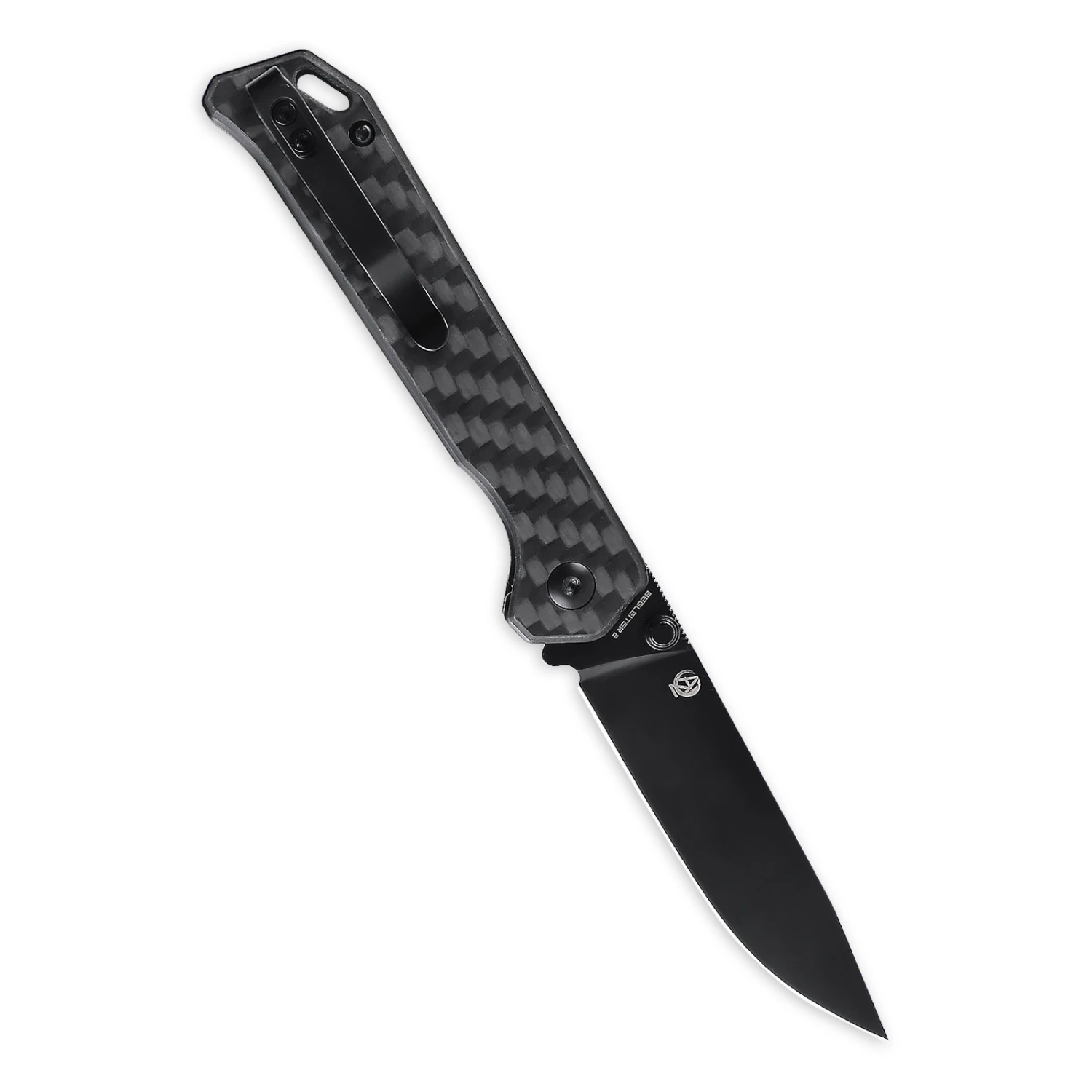 Die Klinge ist aus rostfreiem Stahl N690 gefertigt. Es wird mit dem Daumen über einen Stift an der Klinge geöffnet und durch einen Linerlock-Verschluss in der offenen Position gehalten. Der einzelne Griff ist aus Kohlefaser gefertigt. Am Ende des Griffs befindet sich ein Loch für ein Schlüsselband. Das Messer ist mit einem Clip zum Tragen in einer Tasche ausgestattet.