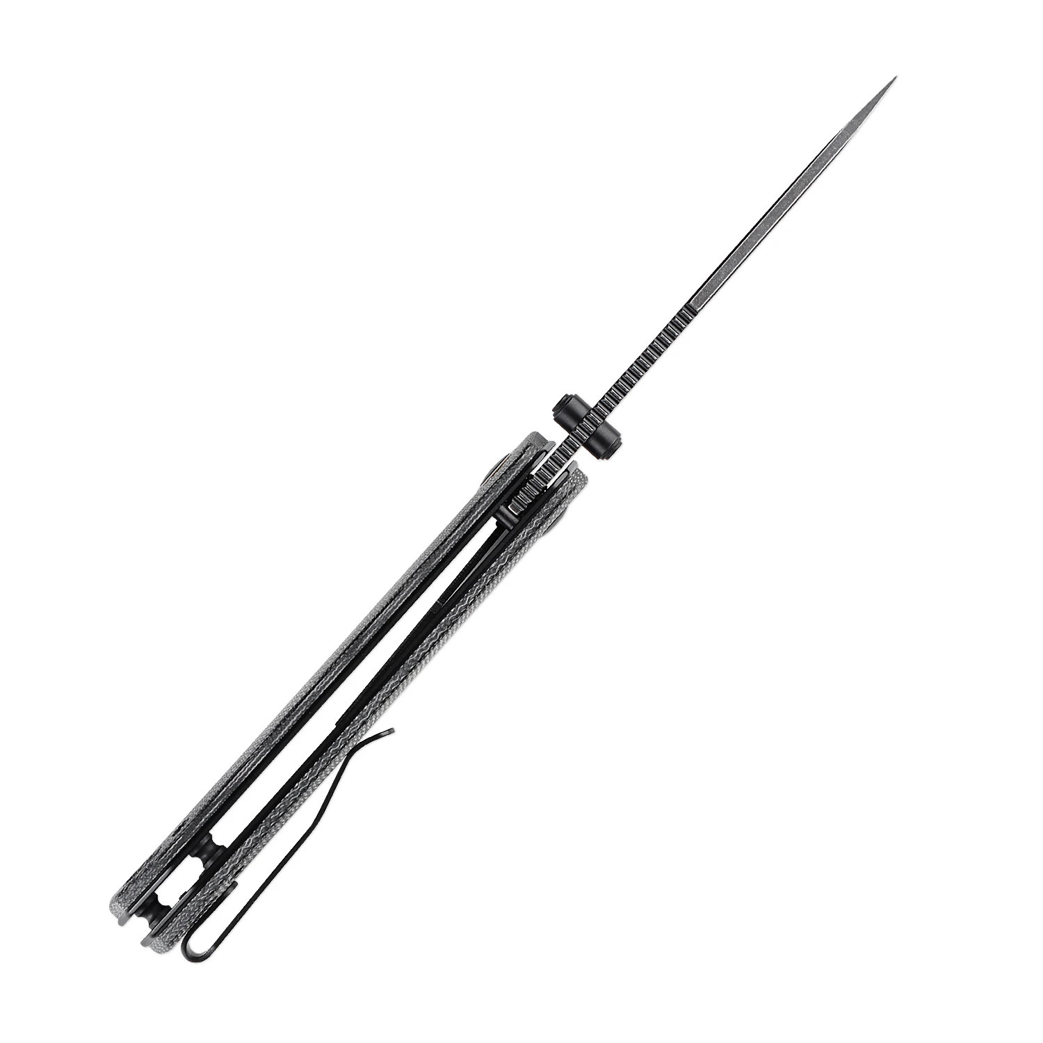 Die Klinge ist aus rostfreiem 154CM Stahl gefertigt. Es wird mit dem Daumen über einen Stift an der Klinge geöffnet und durch einen Linerlock-Verschluss in der offenen Position gehalten. Der einzelne Griff ist aus Micarta gefertigt. Am Ende des Griffs befindet sich ein Loch für ein Schlüsselband. Das Messer ist mit einem Clip zum Tragen in einer Tasche ausgestattet.
