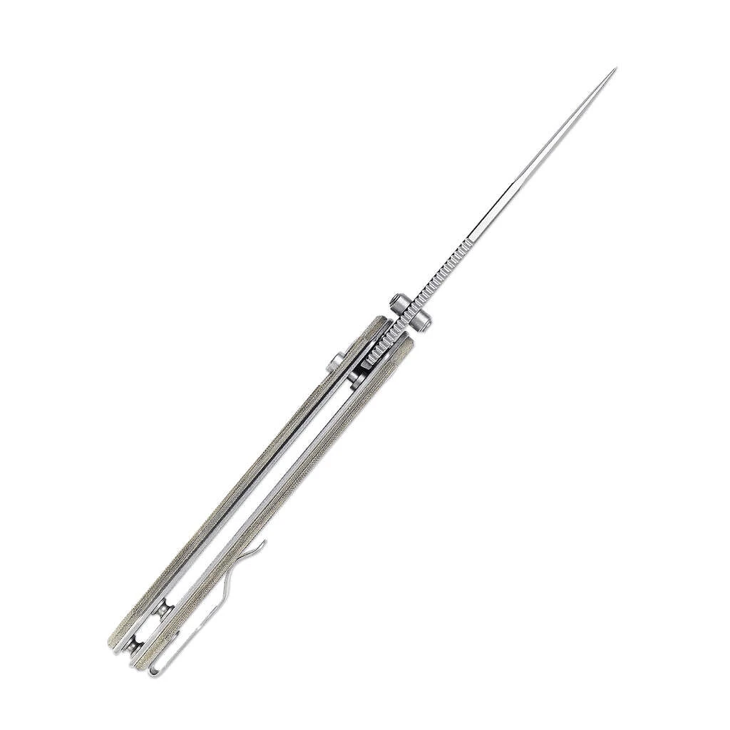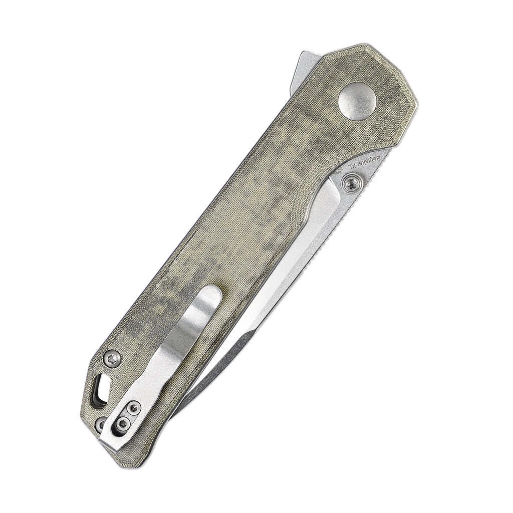 Die Klinge ist aus rostfreiem 154CM Stahl gefertigt. Sie lässt sich mit einem Flipper öffnen und wird durch eine Buttonlock-Verriegelung in der offenen Position gehalten. Der einzelne Griff ist aus strapazierfähigem Micarta gefertigt. Am Ende des Griffs befindet sich ein Lanyard-Loch. Das Messer ist mit einem Clip zum Tragen in einer Tasche ausgestattet.
