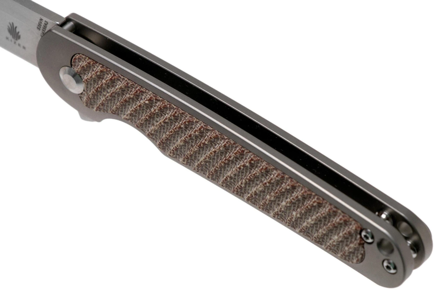 Die Klinge aus hochwertigem CPM-S35VN-Stahl lässt sich mit einem Flipper öffnen und wird durch einen Framelock-Verschluss in geöffneter Position gehalten. Der Griff ist aus Titan mit einer eleganten Micarta-Einlage gefertigt. Am Ende des Griffs befindet sich ein Loch für ein Schlüsselband. Das Messer ist mit einem Clip zum Tragen in einer Tasche ausgestattet.