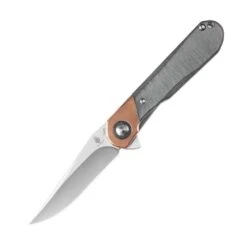 Die Klinge aus hochwertigem 154CM-Stahl lässt sich mit einem Flipper öffnen und wird durch einen Linerlock-Verschluss in der offenen Position gehalten. Der Griff ist aus Messing und Micarta mit einer feinen Textur für einen besseren Halt gefertigt. Am Ende des Griffs befindet sich ein Loch für ein Schlüsselband. Das Messer ist mit einem Clip zum Tragen in einer Tasche ausgestattet.