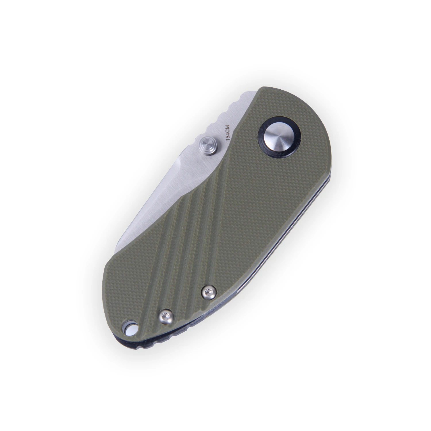 Die Klinge aus hochwertigem 154CM-Stahl lässt sich mit dem Daumen über einen Stift an der Klinge öffnen und wird durch einen Linerlock-Verschluss in der offenen Position gehalten. Der Griff ist aus G-10 Material gefertigt. Am Ende des Griffs befindet sich ein Loch für ein Schlüsselband. Das Messer ist mit einem Clip zum Tragen in einer Tasche ausgestattet.