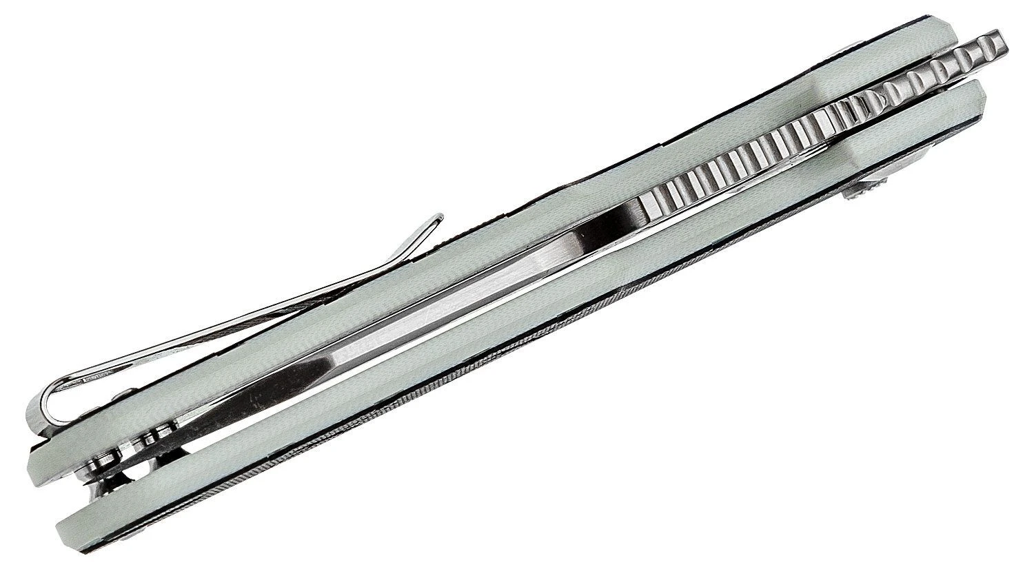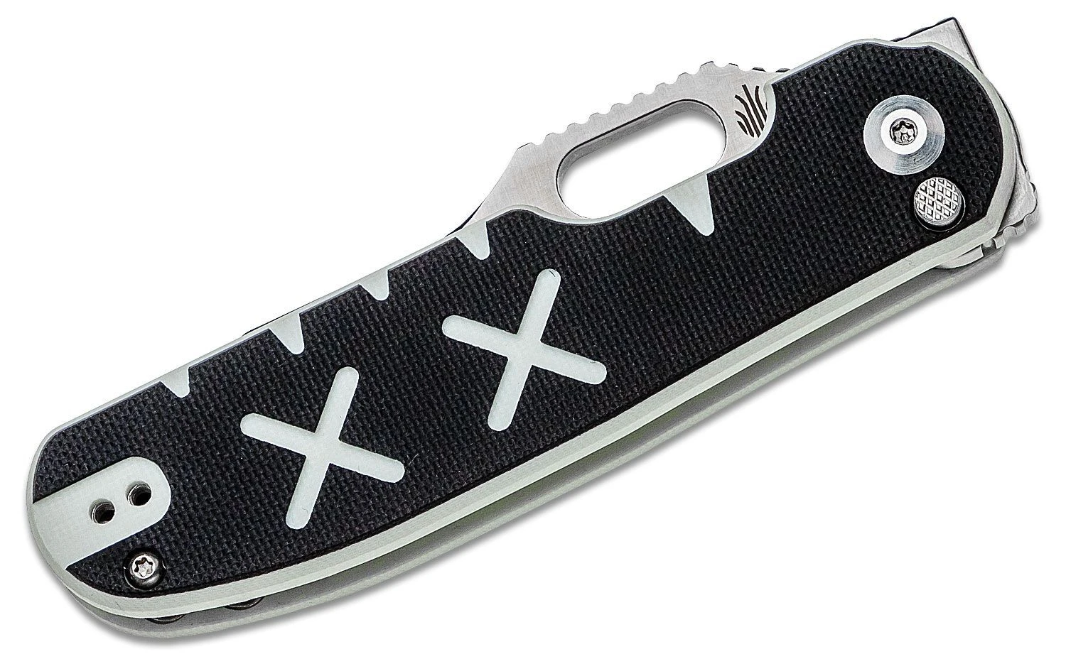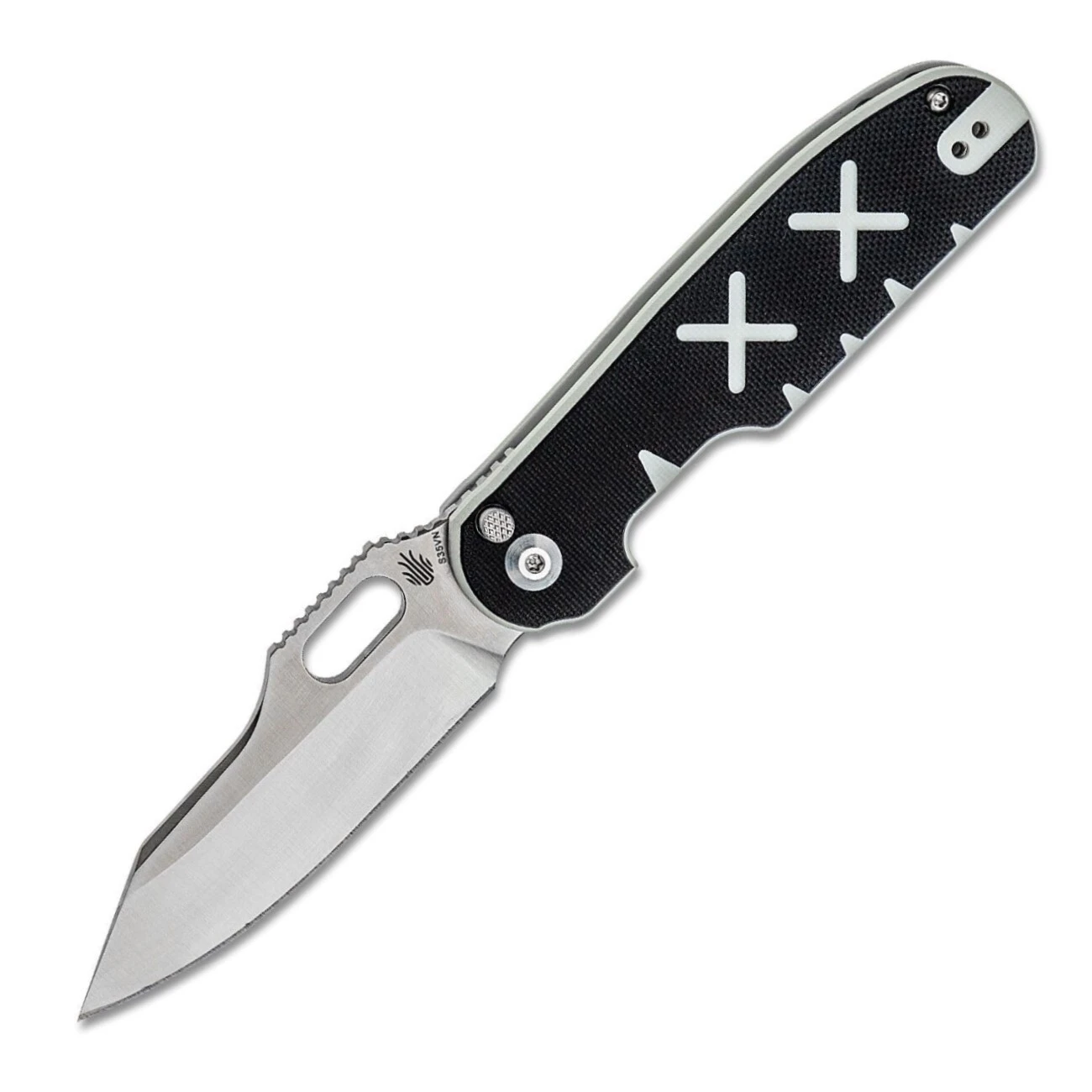 Die Klinge aus hochwertigem CPM-S35VN-Stahl öffnet sich durch ein Loch in der Klinge und wird durch den Button-Lock in der offenen Position gehalten. Der Griff ist aus G10-Material gefertigt. Das Messer ist mit einem Clip zum Tragen in einer Tasche ausgestattet.
