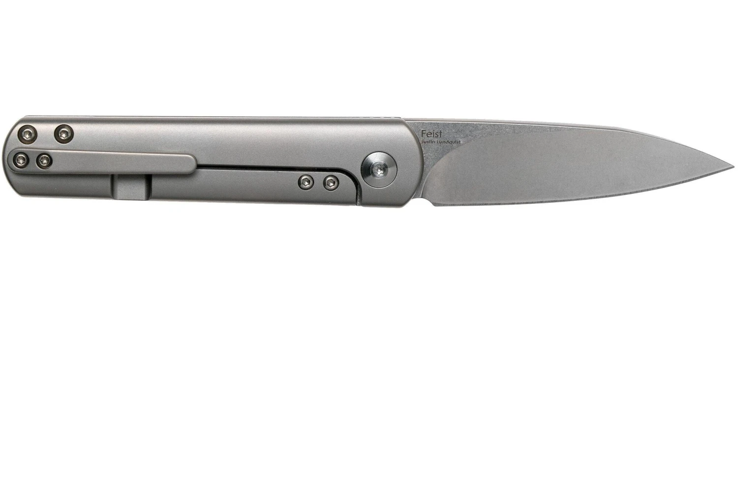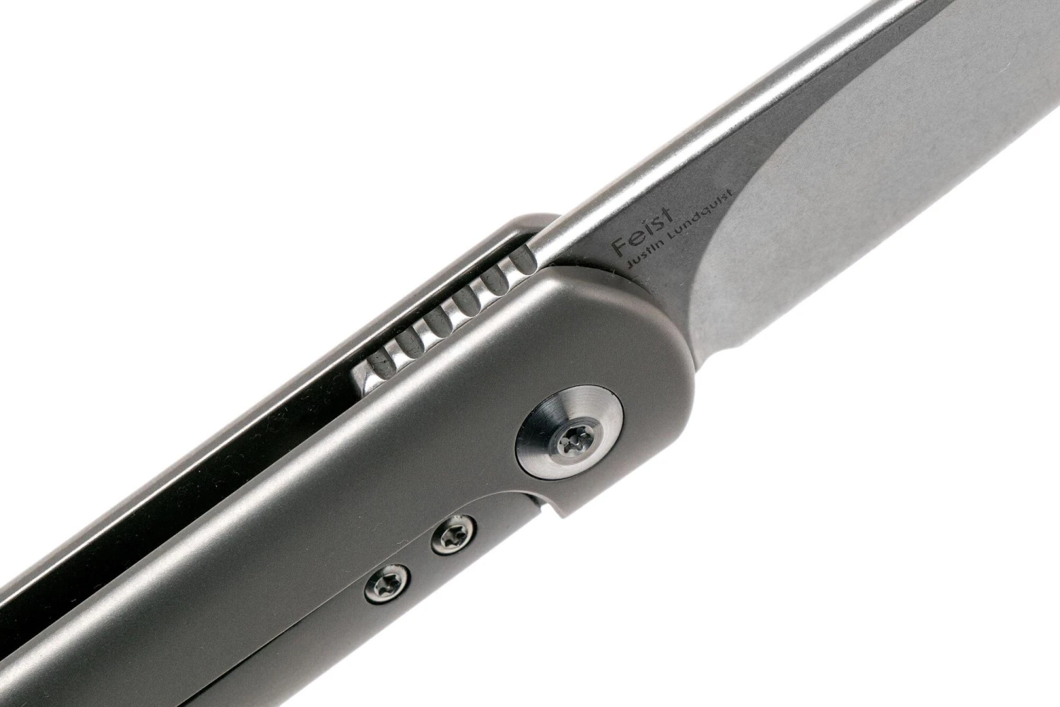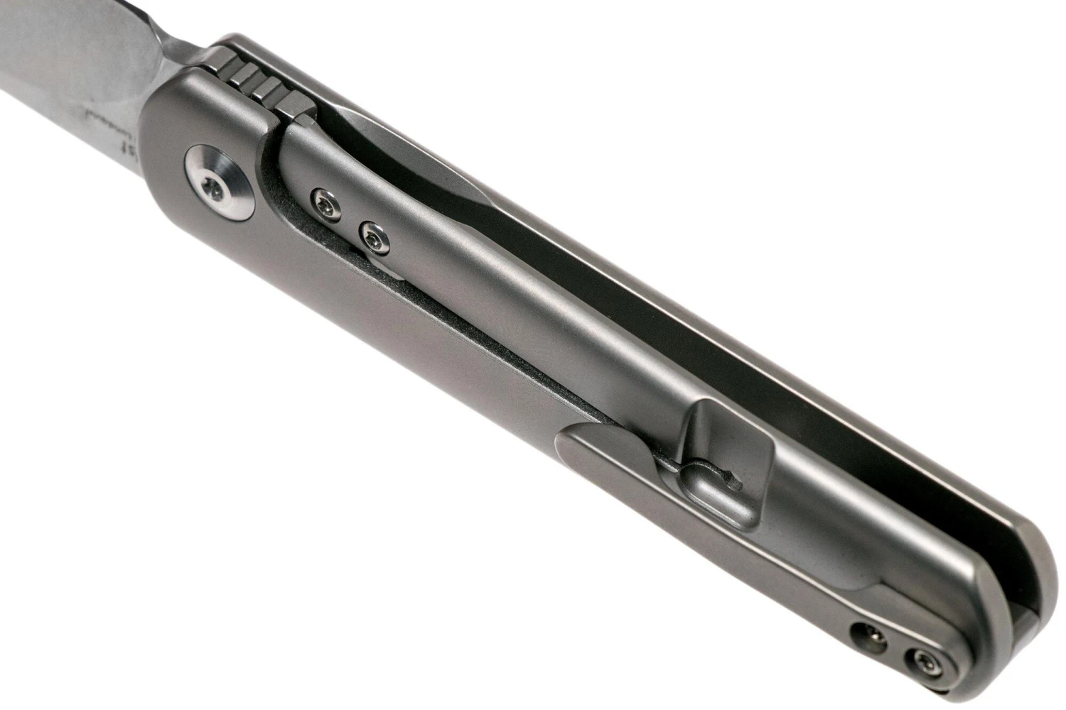 Die Klinge aus hochwertigem CPM-S35VN-Stahl lässt sich mit einem Frontflipper öffnen und wird durch einen Framelock-Verschluss in geöffneter Position gehalten. Der Griff ist aus Titan gefertigt. Das Messer ist mit einem Clip zum Tragen in einer Tasche ausgestattet.