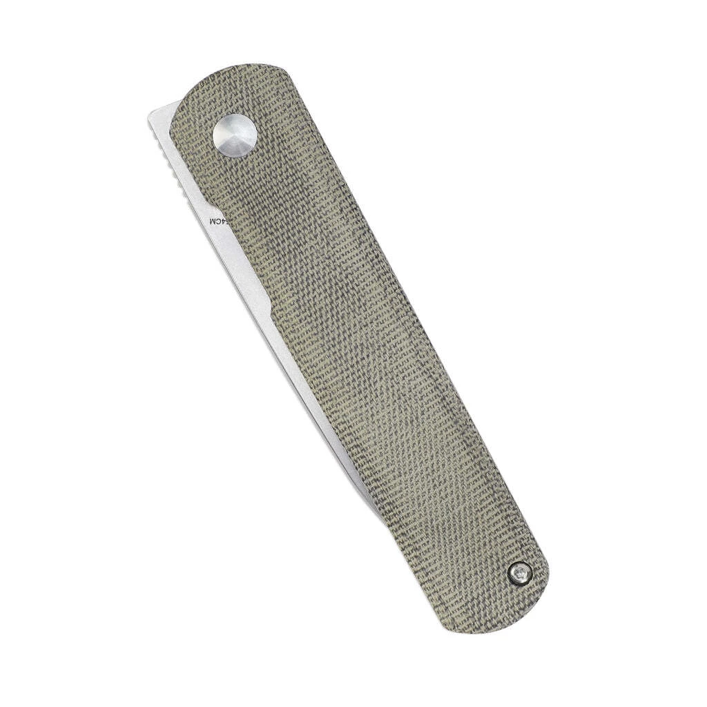 Die Klinge aus hochwertigem 154CM-Stahl lässt sich mit einem Frontflipper öffnen und wird durch einen Linerlock-Verschluss in der offenen Position gehalten. Der Griff ist aus strapazierfähigem Micarta gefertigt. Das Messer ist mit einem Clip für das Tragen in der Tasche ausgestattet.