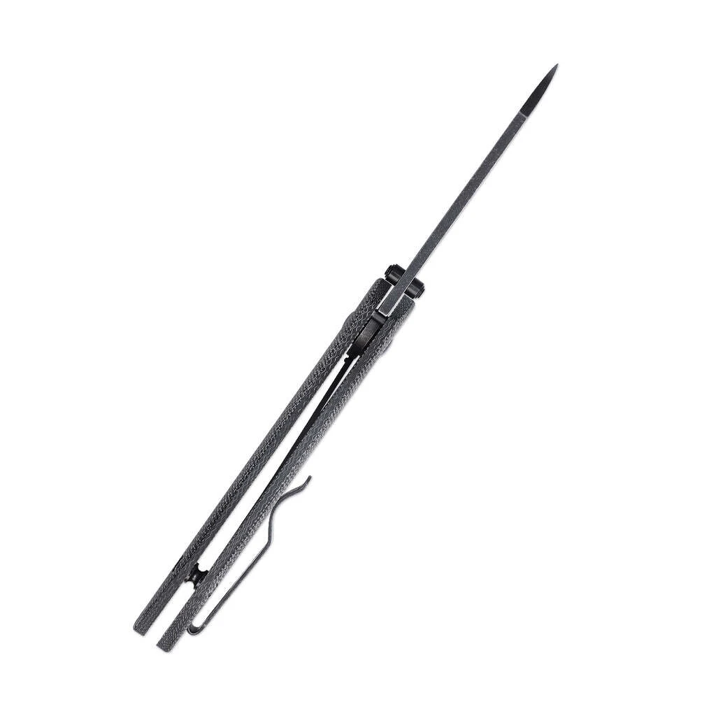 Die Klinge ist aus rostfreiem 154CM Stahl gefertigt. Sie öffnet sich mit einem Stift auf der Klinge und wird durch eine Linerlock-Sicherung in der offenen Position gehalten. Der einzelne Griff ist aus strapazierfähigem Micarta gefertigt. Am Ende des Griffs befindet sich ein Lanyard-Loch. Das Messer ist mit einem Clip zum Tragen in einer Tasche ausgestattet.