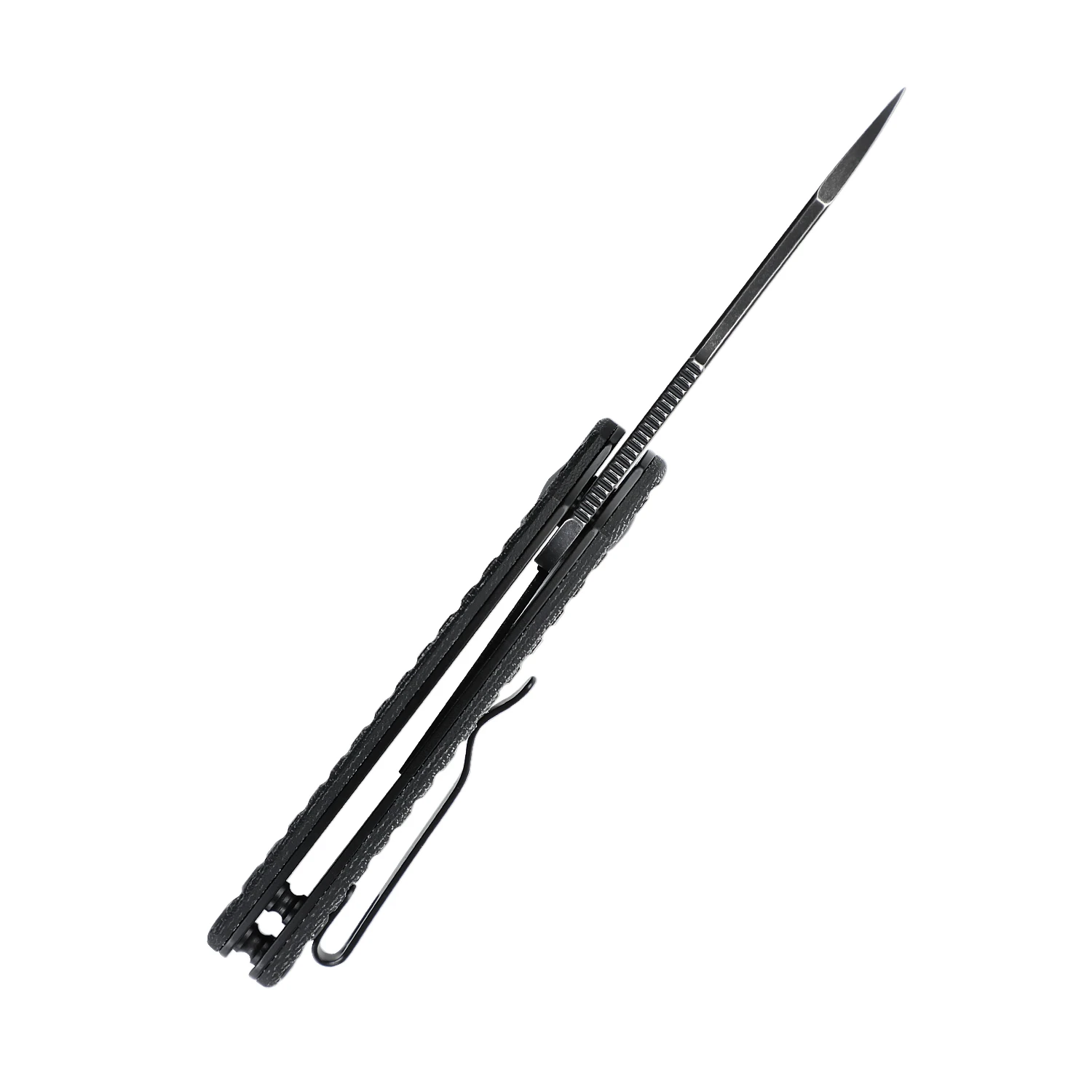 Die Klinge aus hochwertigem 154CM-Stahl lässt sich mit einem Flipper öffnen und wird durch einen Linerlock-Verschluss in der offenen Position gehalten. Der Griff ist aus strapazierfähigem Micarta gefertigt. Das Messer ist mit einem Clip zum Tragen in der Tasche ausgestattet.