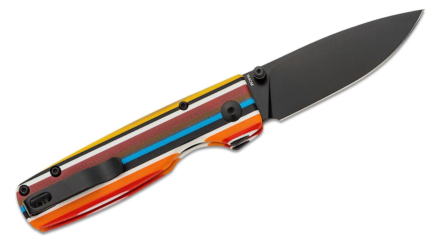 Die Klinge aus hochwertigem 154CM-Stahl öffnet sich mit einem Stift auf der Klinge und wird durch einen Button-Lock in der offenen Position gehalten. Der Griff ist aus strapazierfähigem G10-Material gefertigt. Das Messer ist mit einem Clip für das Tragen in einer Tasche ausgestattet.