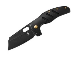 Kizer Sheepdog C01C XL S35VN Titanium All BlackDie XL-Version des Sheepdog ist mit einer bulligen Sheepfoot-Klinge ausgestattet, die aus pulvermetallurgischem CPM-S-35VN gefertigt wird. Der Linerlock verriegelt die Klinge sicher und zuverlässig, während das Daumenloch ein intuitives Öffnen ermöglicht. Der Griff aus schwarzem Titan ist mit einem ist ergonimisch ausgeprägt und liegt auch bei schweren Arbeiten sicher in der Hand. Goldfarbene Schrauben setzen einen gelungenen Kontrast zu dem komplett schwarzen Taschenmesser. Mit Clip (Tip-Up/r).Technische DatenGesamtlänge: 23,6 cmKlingenlänge: 10 cmKlingenstärke: 3,2 mmGewicht: 217 GrammKlingenmaterial: CPM-S-35VNGriffmaterial: TitanDesigner: Chris ConawayVerschluss: FramelockÖffnungshilfe: DaumenöffnungÖffnungsmechanismus: ManuellFarbe: SchwarzKlingenfarbe: Schwarz