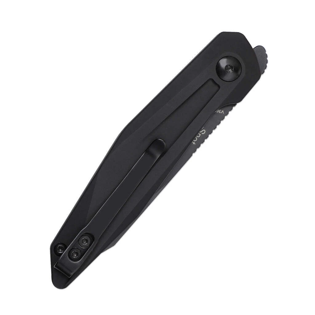 Die Klinge aus 154CM hochwertigem Stahl öffnet sich mit einem Frontflipper und wird durch eine Linerlock-Sicherung in der offenen Position gehalten. Der Griff ist aus leichtem Aluminium gefertigt. Das Messer ist mit einem Clip zum Tragen in einer Tasche ausgestattet.