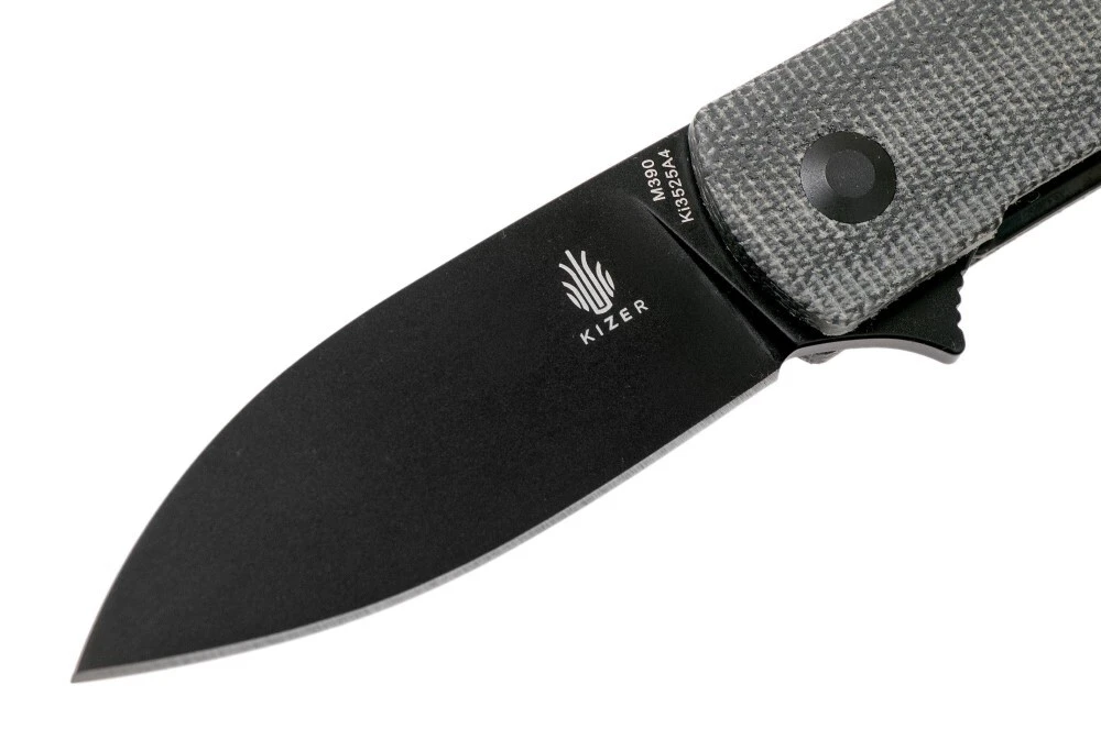Die Klinge aus hochwertigem M390-Stahl lässt sich mit einem Flipper öffnen und wird durch einen Linerlock-Verschluss in der offenen Position gehalten. Der Griff ist aus strapazierfähigem Micarta gefertigt. Das Messer ist mit einem Clip zum Tragen in einer Tasche ausgestattet.
